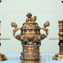Bộ đồ thờ bằng đồng ngũ sự tam cui khảm tam khí cao 60cm